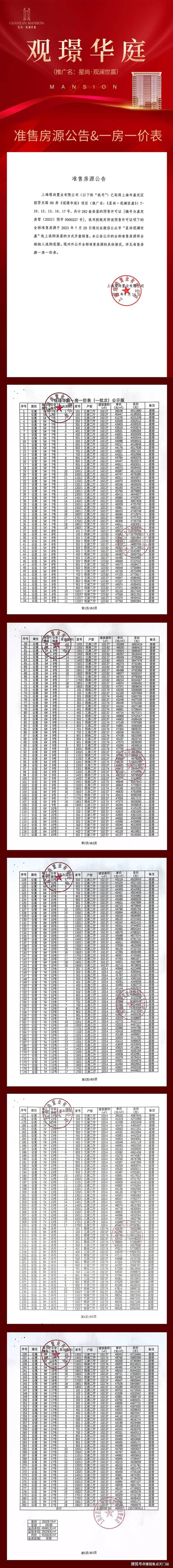 项目一房一价表