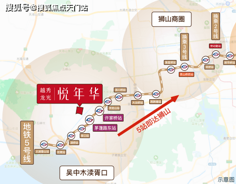 地铁5号线的开通填平了时间鸿沟,便利出行,乘坐地铁5号线茅蓬路东站,约10分钟直抵狮山核心。