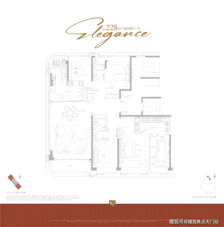 户型方面,所有90套户型的采光,都有即将入市的90套天际大平层圈层纯粹,中间户是185㎡,边户是228㎡,均为四房两厅三卫设计,全系类一梯一户的配置。