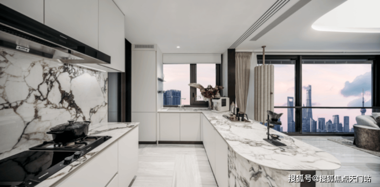 如宝格丽大理石打造的西厨岛台、铂浪高的净水三合一水龙头和一体式大水槽、霍尼韦尔的前置过滤器、全屋软水以及末端净水器系统、来自意大利法罗力燃气热水器、德国唯宝卫浴、当代龙头及花洒......还有全屋华为智能家居系统配置。这一套组合,是真正意义上的顶豪序列配置!