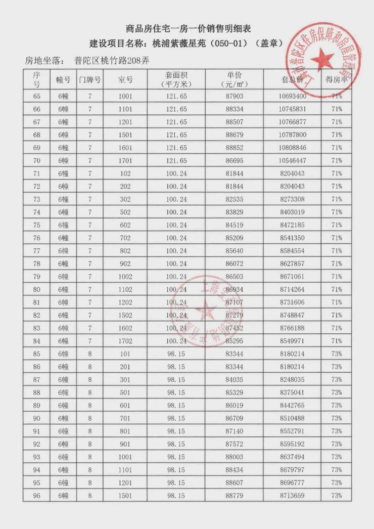 【得 房 率】:约70%-73%