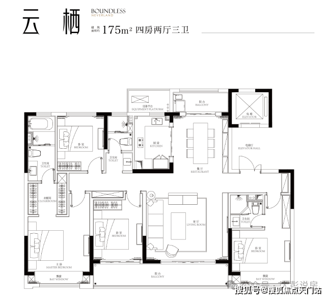 ● 四叶草式户型设计,隐私性极佳