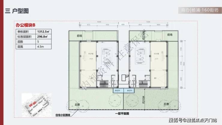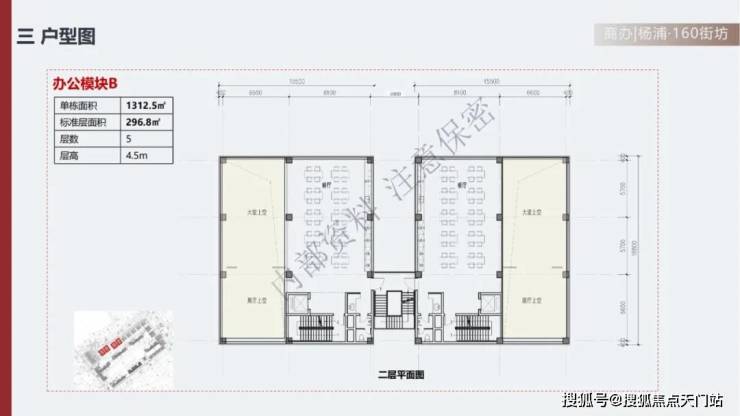 地上5层+地下1层,地上层高4.5米,地下层高5.25米。