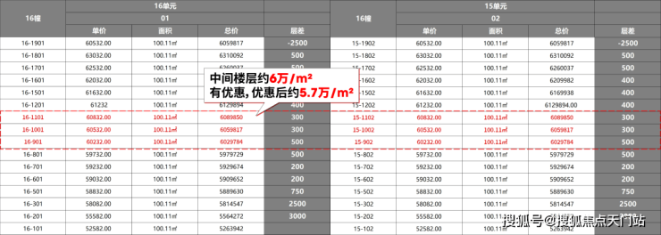 所推楼栋中间楼层(百平米)优惠下来单价仅约 5.7万/㎡,比周边竞品同楼层便宜3000-13000元/㎡。
