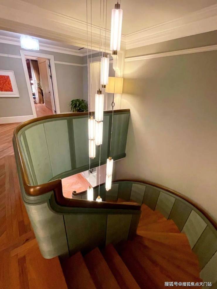 现场的部分工法展示就足够体现项目的“讲究”:全屋超强喷淋灭火装置,360度无死角,防火安全保障;室内旋转楼梯的木材来自东南亚柚木;配置豪华双开实木门,进门大空间玄关,甚至屋内还有安全屋。