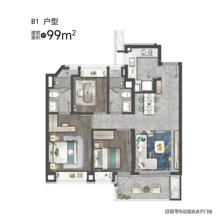 高层99㎡:3房2厅2卫