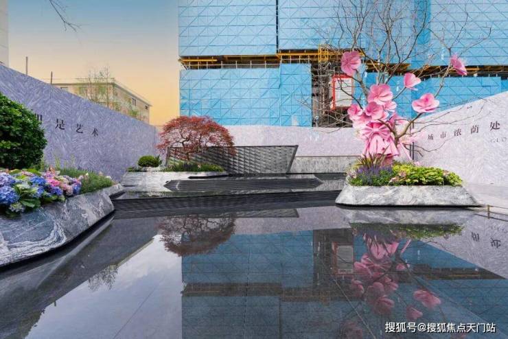 水景旁的特选造型鸡爪槭,由设计师辗转多地精心甄选而来,搭配莫兰迪色系的创新花境,打造出兼具艺术感与松弛感的无风雨归家洄游空间。
