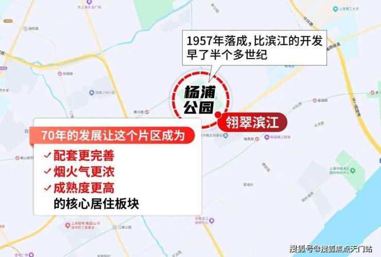 而翎翠滨江所在的杨浦公园片区:承载了70年杨浦人集体记忆的烟火腹地,是杨浦区“步行生活圈”蓝图里,配套浓度更高、烟火气更足、繁华度更顶的存在。