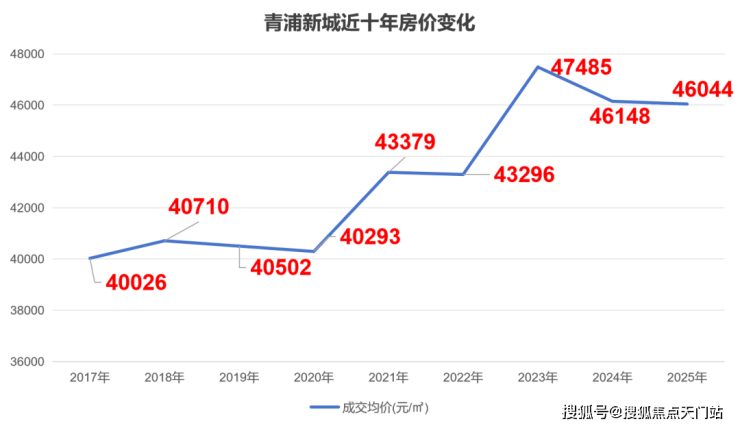 据克而瑞数据统计,青浦新城2017年房价就已经达到4万/㎡,最近两年更是涨到了4.6万/㎡。