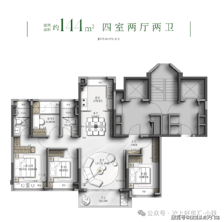 推售建面约114-126-144-190m²3-4房,