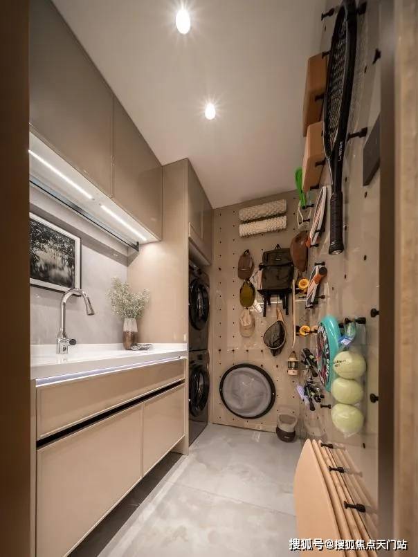不仅彻底解放了南向阳台,让其完全留给观景、休闲与亲子互动,更与厨房形成科学家务动线,洗切炒、餐后清洁、衣物洗护形成闭环,不打扰公共社交与私密休憩空间。