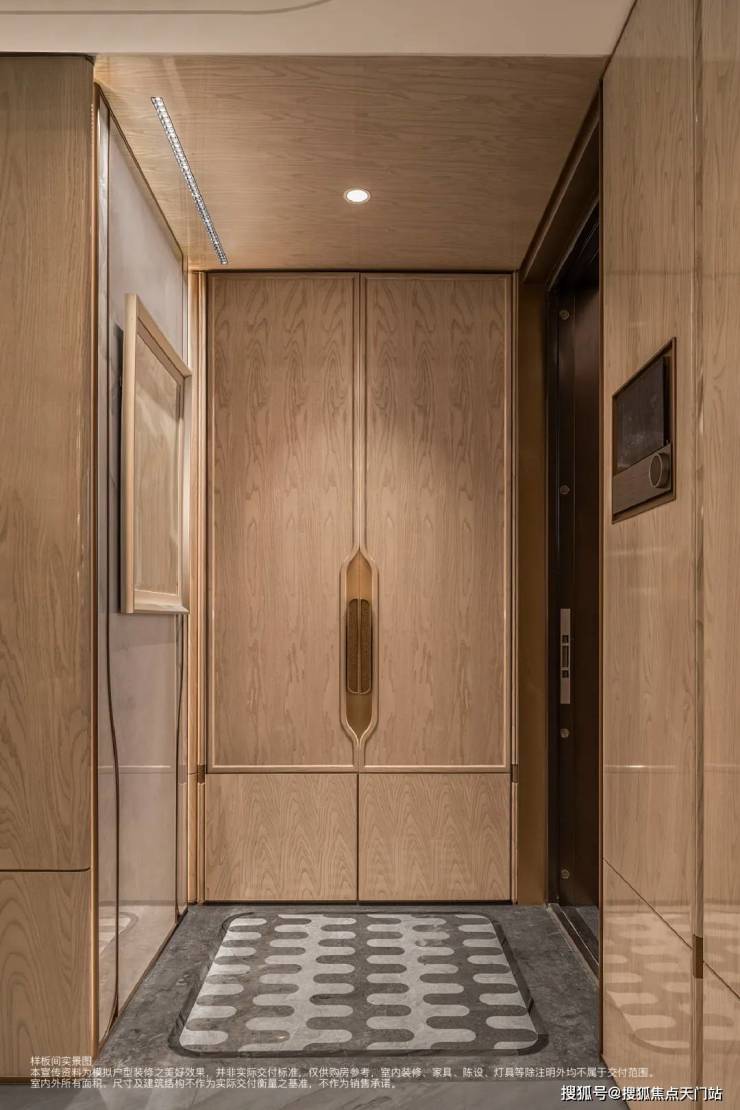 电梯厅做到三面全明采光,单户使用面积约6.6㎡,完全属于业主的 “多享空间”。既能做外玄关收纳鞋履、行李箱,拓展室内储物空间,也能打造入户景观,甚至预留了休闲角落,让归家的第一步就兼具实用与温度。