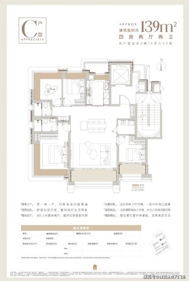 建面约139㎡天幕四房!