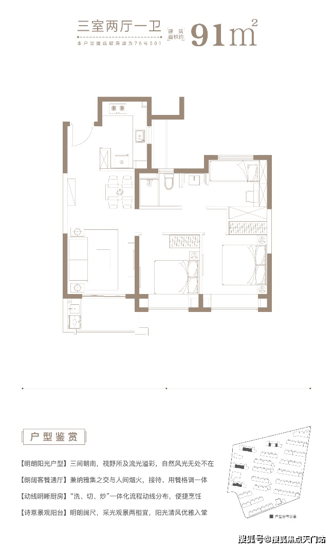 户型解析:三开间朝南+主卧套房设计+动静分离+全卧室带飘窗,采光优秀;厨房预留大尺度冰箱位;双卫设计,没有了“早高峰”的烦恼;主卧套房,尊享私密和奢阔尺度。舒适度和尺度感兼具,非常匹配精英家庭的生活追求!