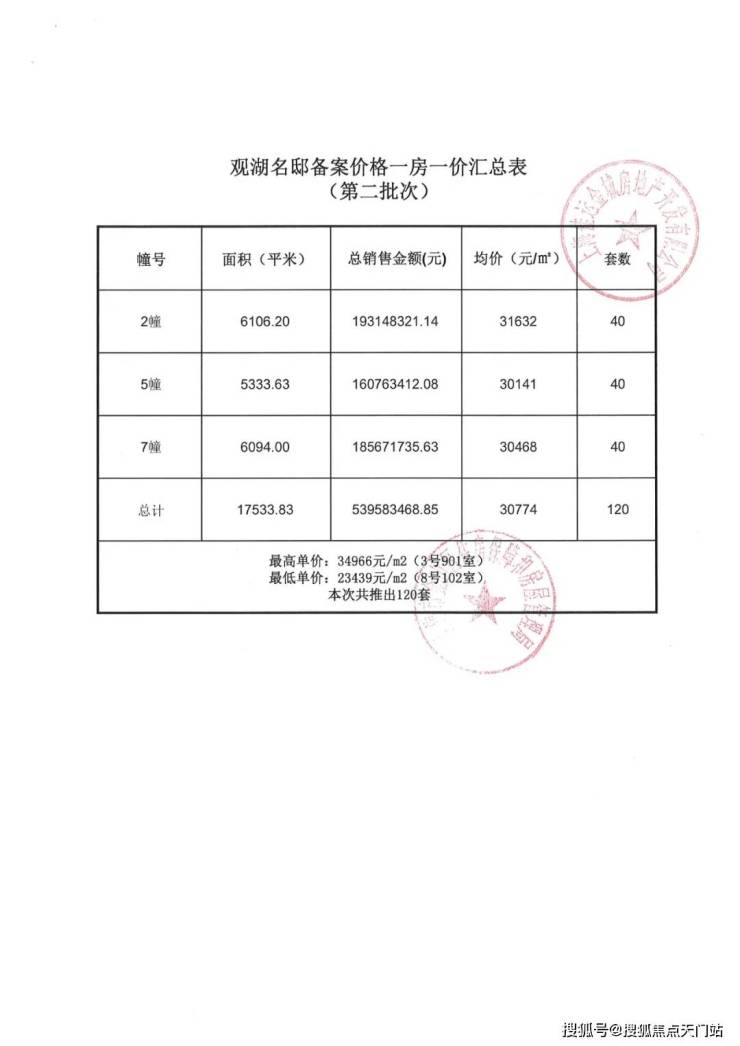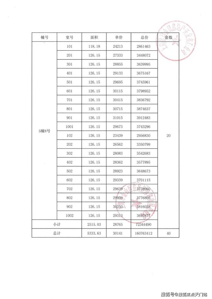 项目一房一价表