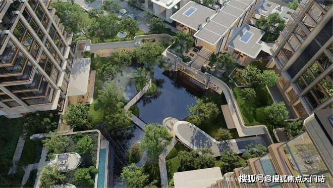 3500㎡下沉水苑“回归之境”,汇聚会客、泳池、茶室等多功能空间;百米绿茵“探索之境”,融入派对庭院、文学花园与游戏甲板;