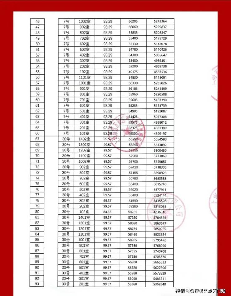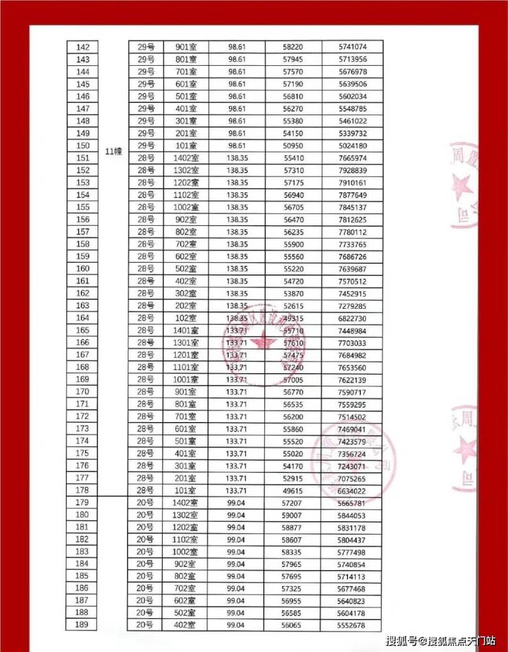 一房一价表: