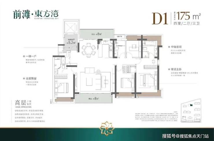 如果有进阶改善置业需求的客户,可以选择 建面约140/175㎡4房2厅3卫!