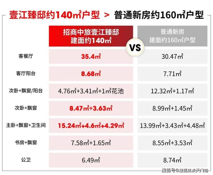 在与建面约140㎡左右的大4房的对比中,壹江臻邸客餐厅、客厅阳台、主卧、公卫的空间都更大。