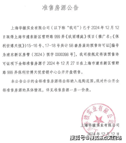 1、项目推广名为“保利·世博天悦”,地名核准名/备案名为“玖丽璟庭”,开发公司为:“上海华辕实业有限公司”;预售证号:浦东新区房管(2024)预字0000398号;2、本资料为要约邀请,不作为要约或承诺;3、相关宣传内容不排除因政府相关规划、规定及出卖人分期规划、未能控制等原因而发生变化;4、买卖双方的权利义务以双方签订的商品房买卖合同及其补充协议、附件等书面文件为准;5、本宣传材料所涉及户型仅供示意参考,具体以政府部门最终审定的图纸和销售合同为准,本资料所涉及面积皆为预估面积,相同户型单位因楼栋、楼层、单元等差异,局部结构、形式、面积、装饰等可能有所不同,且预估面积与实际面积可能存在差异,面积最终以房管局测绘为准。户型图中装修、家具、电器等设备仅为示意,不属于交付内容和交付标准,实际部品的选型和房间空间尺寸根据户型情况,略有差异,以现场实际为准;6、本宣传资料中涉及的价格、折扣、付款方式等信息,因销售时间、户型楼栋、楼层、方位等不同有所差异,以双方签订的商品房买卖合同及其补充协议、附件等书面文件为准;7、本资料所发布的内容为2024年12月的信息,敬请留意最新资料