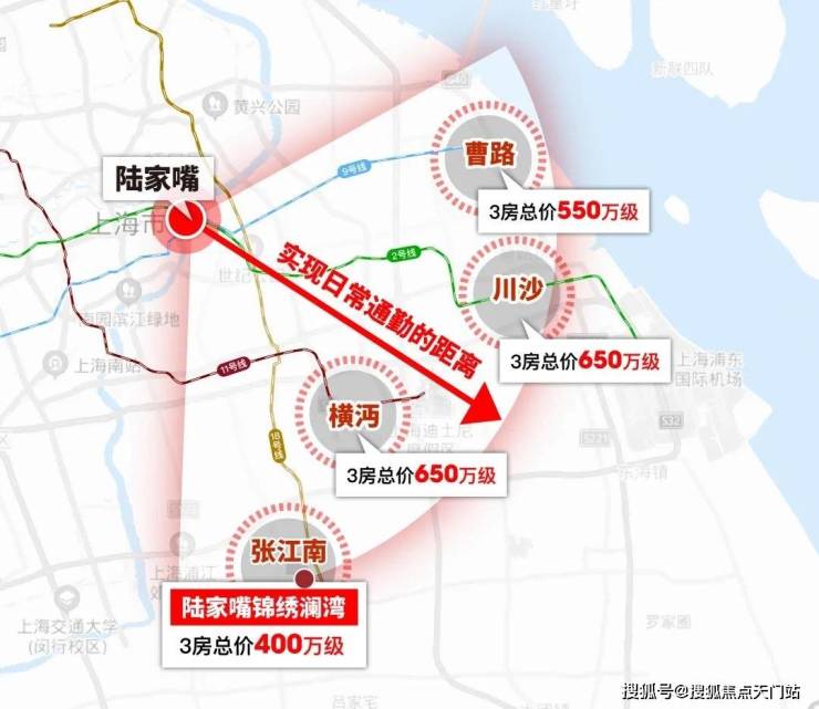 以陆家嘴为原点,在能实现日常通勤的距离范围内,曹路、川沙、橫沔等板块,3室新房总价几乎都在600万左右,400万级购房者只能望洋兴叹!