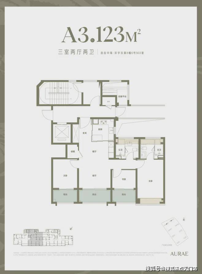 4、【新规后大三房】135平户型,三阳台,全飘窗,实得率约93%。每个卧室空间尺度舒适,这个户型非常适合需求强收纳的粉丝,收纳总量可达32.5平,实现收纳自由;