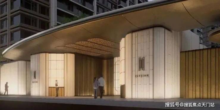 蓝灰色玻璃+仿石铝板+艺术涂料材质,穿插优雅线条,让建筑这张“脸”看起来更高级。One&Only酒店式门头。用雕塑体块、温润弧面和雅致线条,营造具有艺术格调的归家仪式感。