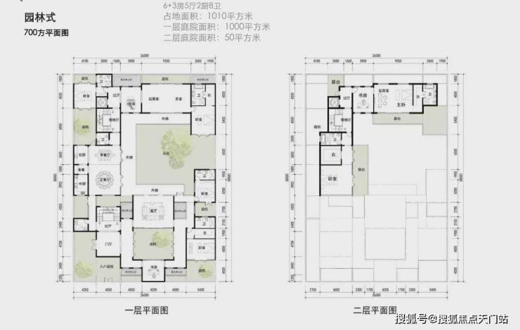 以335㎡ 及300㎡户型为主,顶层设置670㎡及600㎡户型。