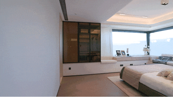 卧室的转角飘窗,可以用作储物、梳妆、观景,在飘窗上打一个衣柜,也能提高收纳功能。