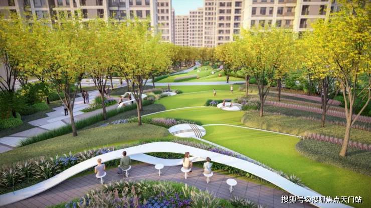 立足南北双片区 近50000 ㎡大盘景观空间,森兰·航荟名庭规划了以 300m大中轴,10000 ㎡ 中心景观区为核心的多组团丰富空间