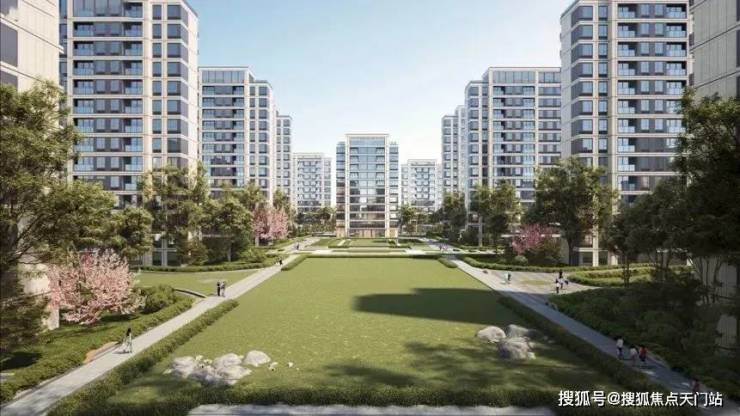 中轴对称的景观大花园布局,融合简约现代的立面风格,将提升社区整体形象与气质。