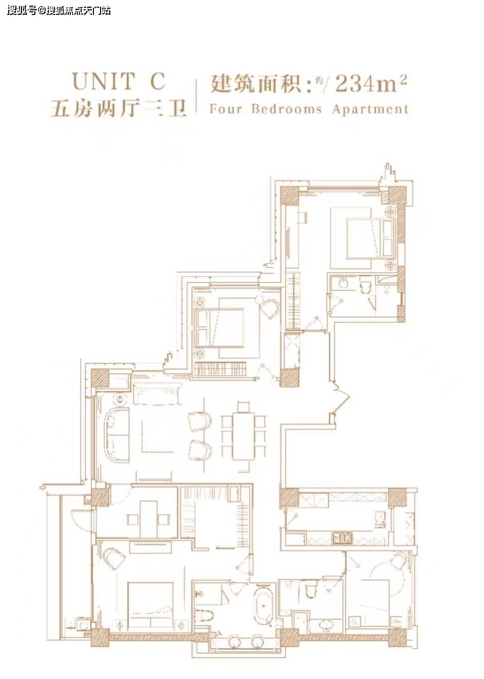 5、户型设计:建面137-234平2-4房,满足二人世界、三口之家以及大家族的不同需求。