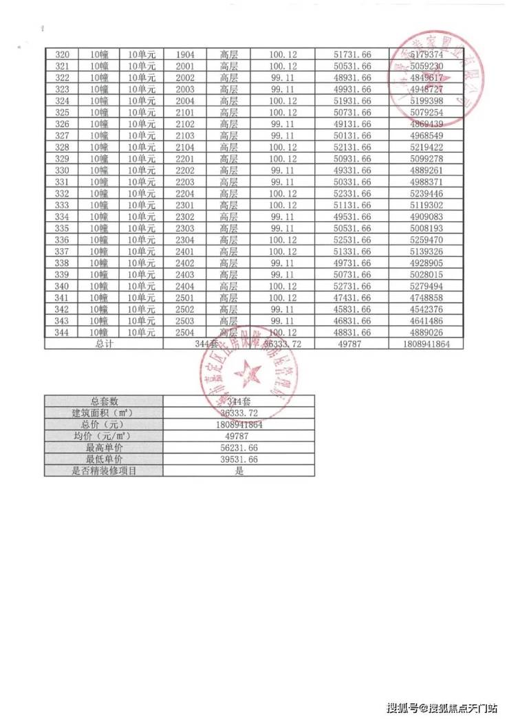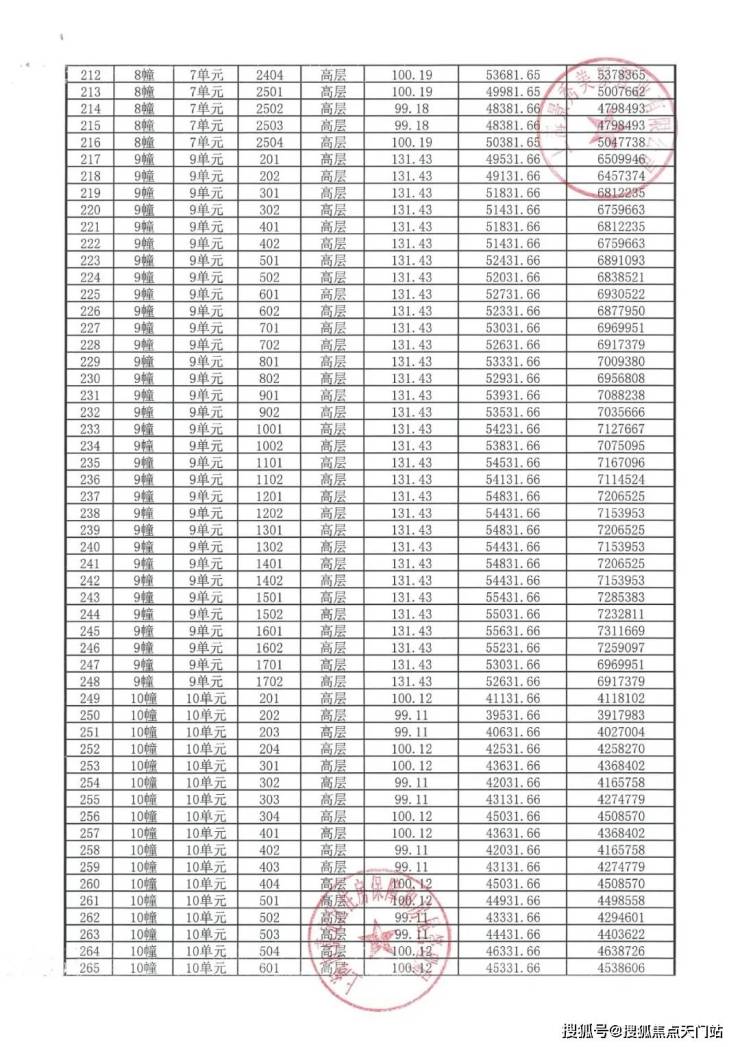 完整一房一价表如下: