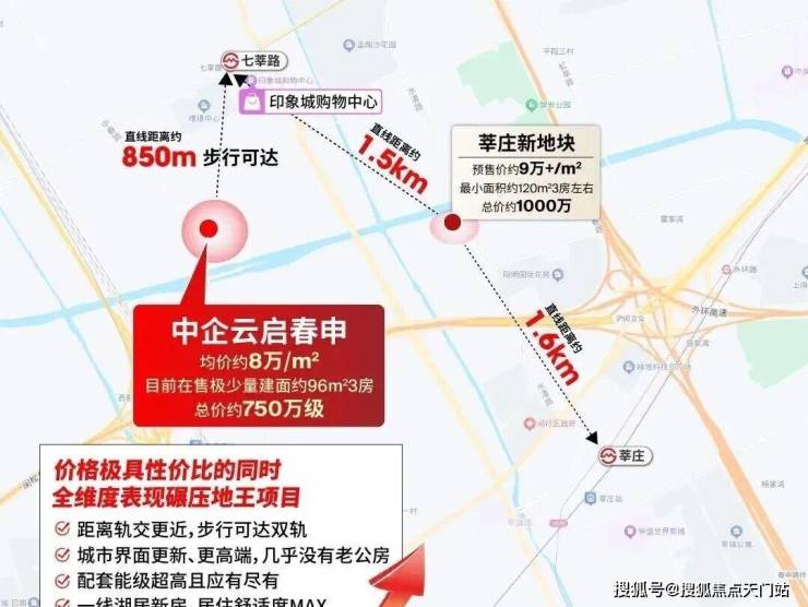 ①漕河泾4站范围内的新房总价都在约千万以上,约750万级只有中企云启春申一盘。这是同样通勤范围内,你能买到的唯一新房。