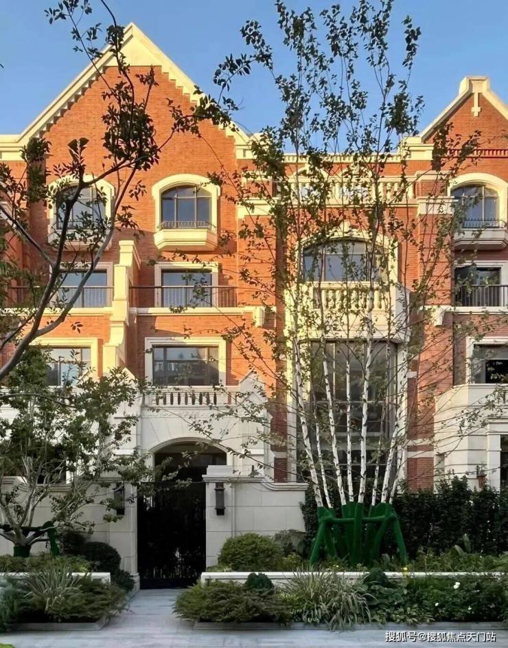 联排别墅采用英式维多利亚建筑风格,红砖与德国米黄干挂石材的搭配,形成温暖且经典的色调;经典长窗/方框窗/八角窗/拱形造型/坡屋面,赋予建筑精巧自然的美学质感。
