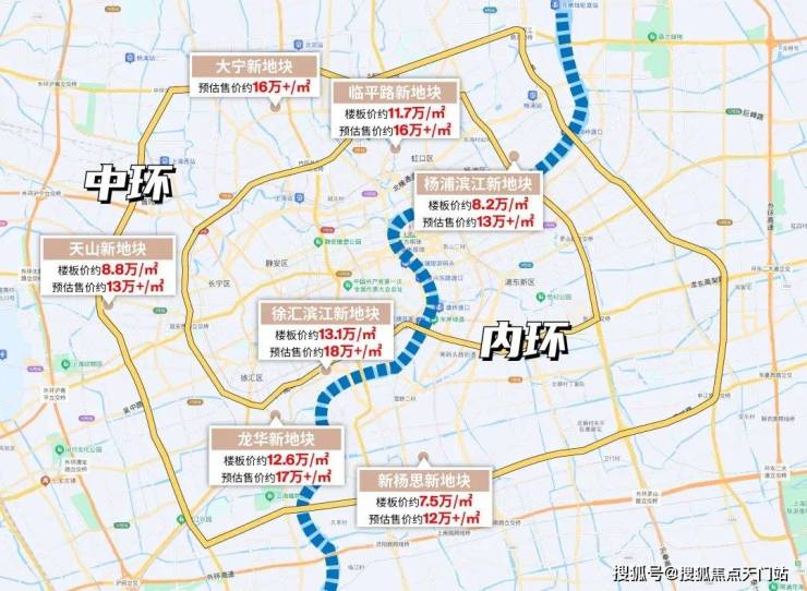 当然,还有核心城区:约12.6-13万楼板价的徐汇滨江、溢价率约38.2%的临平路、溢价率约40%+装修上限的新杨思...
