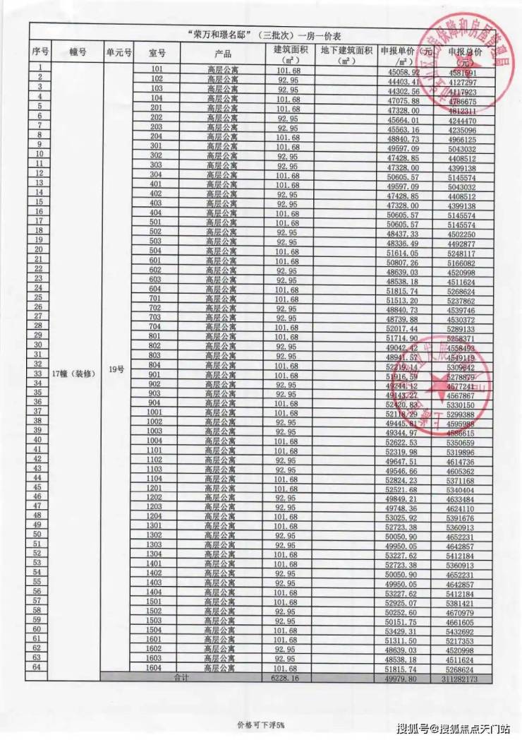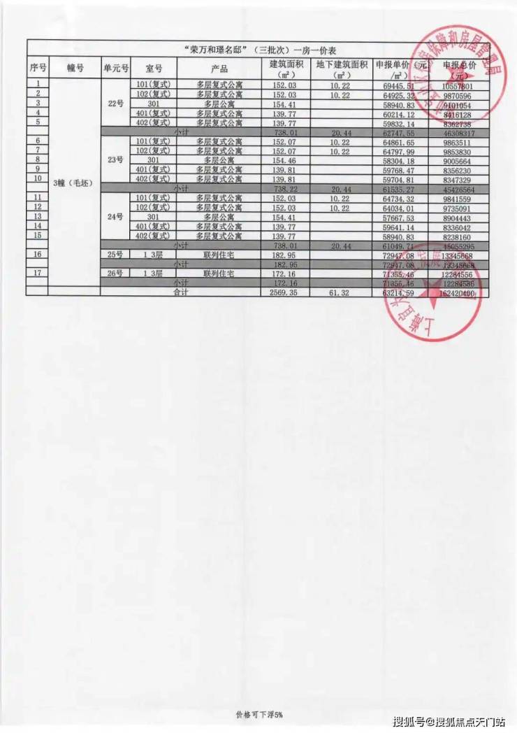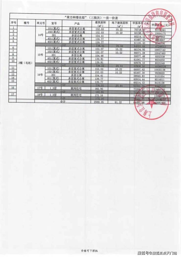 一房一价表如下: