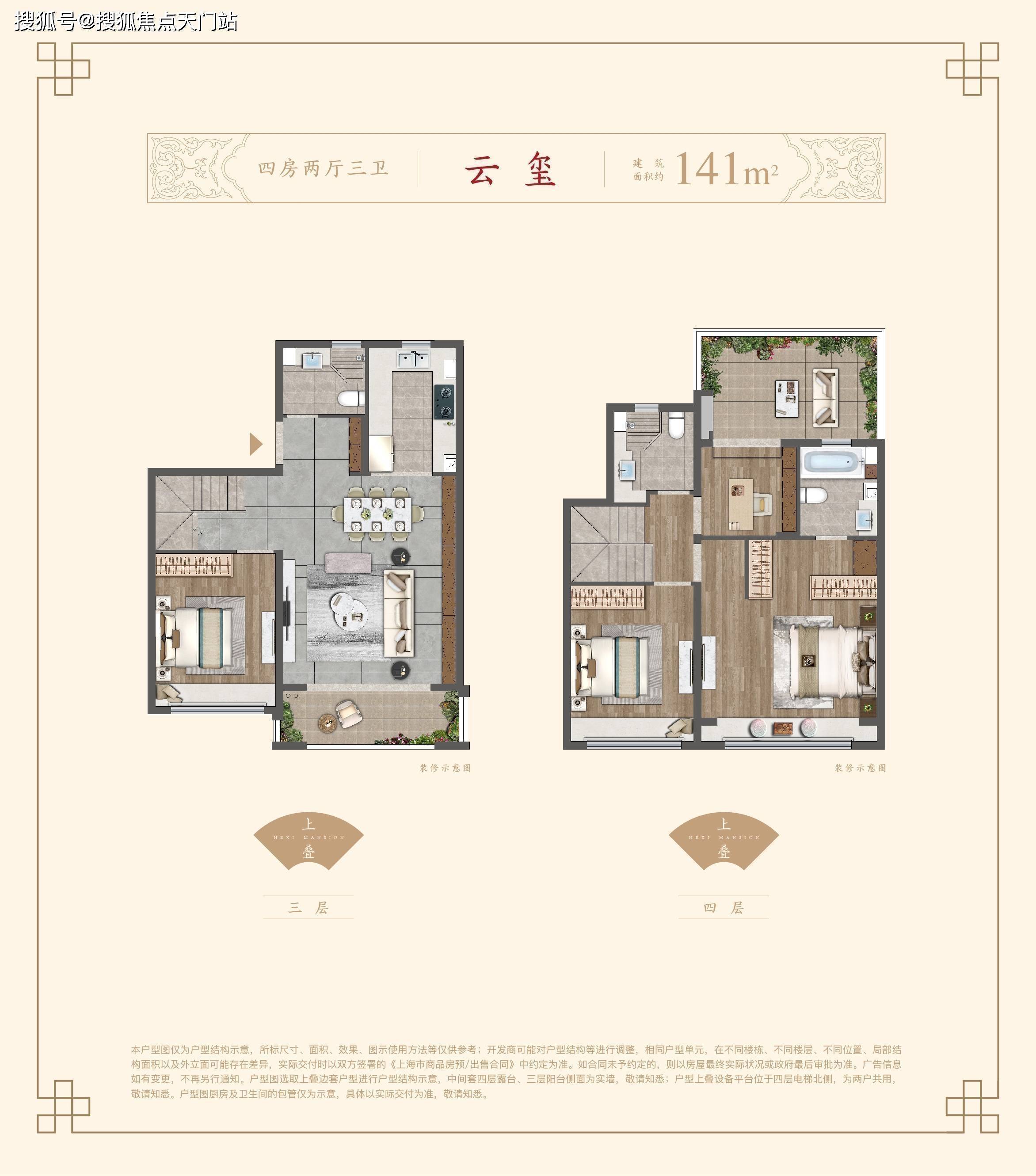 上叠建筑面积约141㎡四房两厅三卫