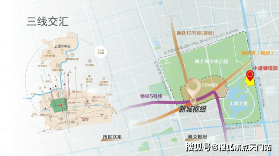 立体交通:目前已开通的地铁5号线无缝衔接1号线通达徐家汇、人民广场;5号线与正在建设中的15号南延伸线及南枫线将均将汇聚于项目西北侧的望园路枢纽。