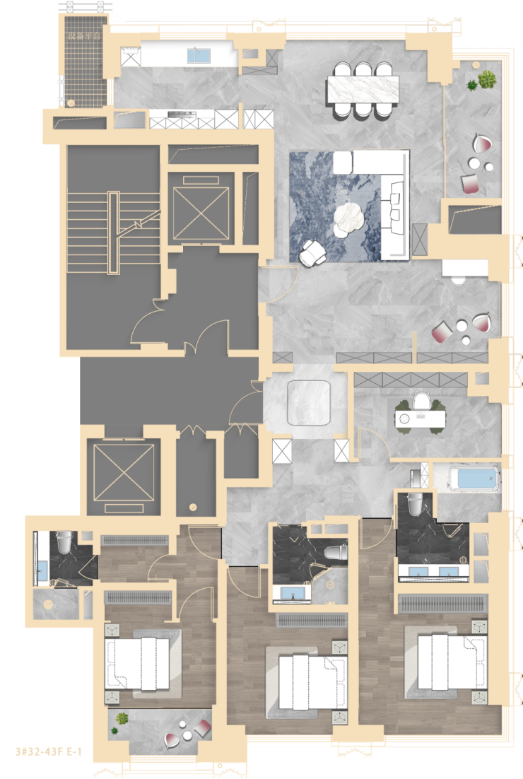 该栋楼拥有尊贵感、舒适度、使用率MAX的户型。建面约193、237㎡为类一梯一户设计,拥独立门厅;建面约302㎡标配两梯一户,排面和仪式感全部All in。主卧堪称星级套房,配置独立衣帽间、双台盆+淋浴空间+大浴缸。另外,安排多重收纳,让每一个空间都能高效利用。