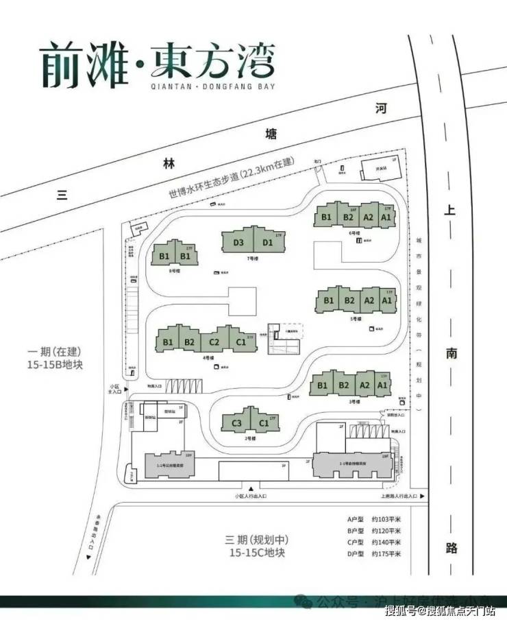 一站直达前滩、 地铁11号线三林站约350米, 中外环轨交红盘、 超30万方河滨大城 永泰三里城二期定名 「前滩·东方湾」,建面约103-175㎡3-4房,均价8万+/㎡。