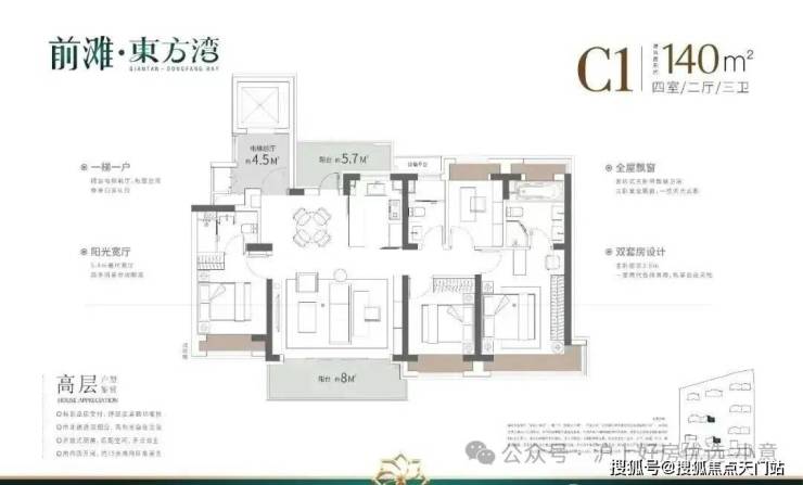 这3个户型三开间朝南、室内 “ 朝南2飘窗+1阳台 ” 、再加上 “2卫”、“动静分离” 的设计,不管是采光、视野、通风、私密性,还是实用性都十分出色。