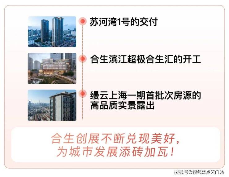 再结合苏河湾1号的交付、合生滨江超极合生汇的启动,这是合生创展匠心和实力的体现。