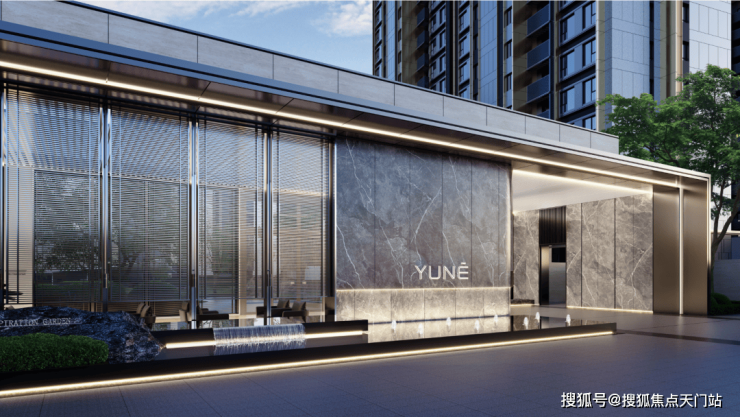 例如立面。顶级的铝材立面用料、大面玻璃结合简洁的直线条、大面积无框开敞阳台玻璃的设计,搭配香槟色金属边框。