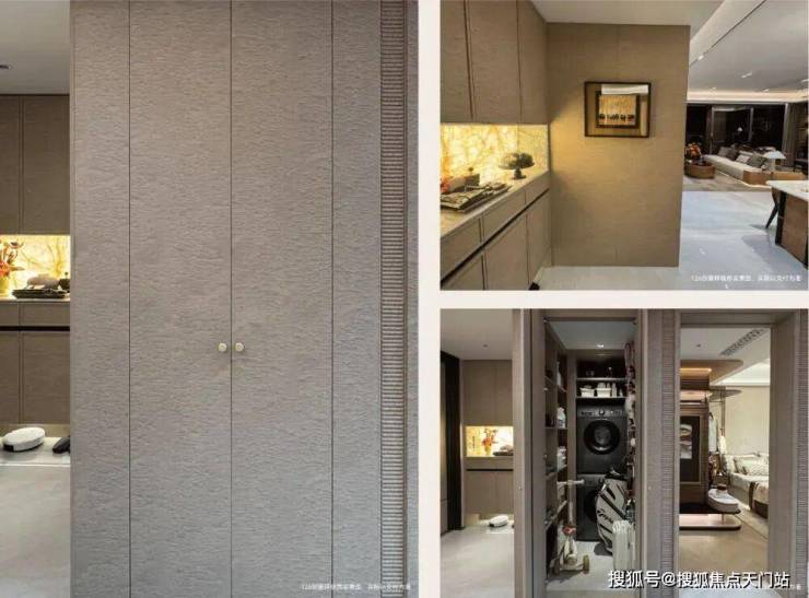 在空间效率方面,玄关贴心设置“800库”归置系统,结合各功能空间的嵌入式储物设计,巧妙化解零碎物品的收纳难题,在提升功能性的同时,保持了视觉空间的极致整洁与高级感。