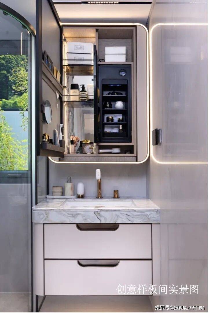 项目的价值提升力体现在严选的品牌体系与人性化细节中。国际一线品牌的选用构成了品质基底,而特别值得关注的是对特定生活场景的深度挖掘。例如,专为女主人打造的双补光镜柜、恒温美妆冰箱等“女神美妆四件套”,将卫浴空间升级为个性化的美妆疗愈空间。