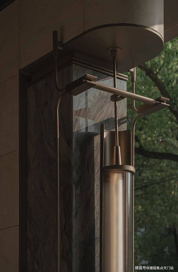 在单元入口和社区会客厅入口的立面上,都通过将弧形元素与米黄色石材和香槟金色金属构建相结合,在视觉上呈现出一种温暖而优雅的气质。
