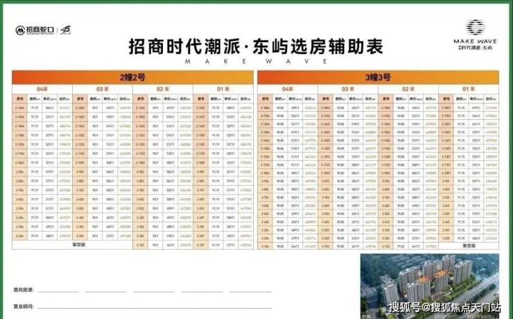 项目名称招商时代潮派 备案名星誉铭庭 开发商招商蛇口 产权性质及年限住宅-70年 户型及面积高层:建面89㎡(3-2-1)【379-460万左右】高层:建面99㎡(3-2-2)【420-524万左右】高层:建面125㎡(4-2-2)【554-672万左右】 单价区间高层:4.2-5.2万 总价区间高层:379-672万左右 交付标准装修(中央空调+地暖+新风) 得房率约73%-78% 绿化率35% 容积率2.0 物业费高层:4.8元/㎡/月 总层高高层14-18F 单层层高高层:14层为3米;18层2.95米 总栋数一期20栋 总户数14-01地块1246户 梯户比14层为一梯两户;18层为两梯四户及三梯六户