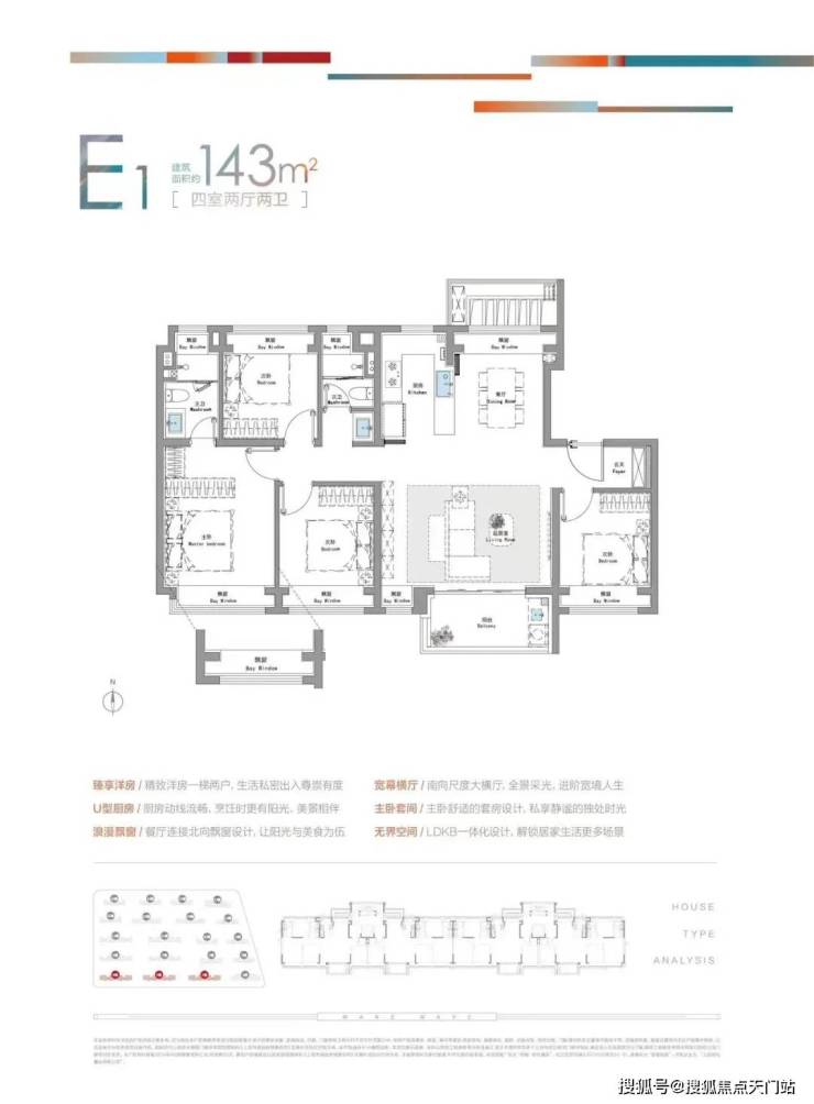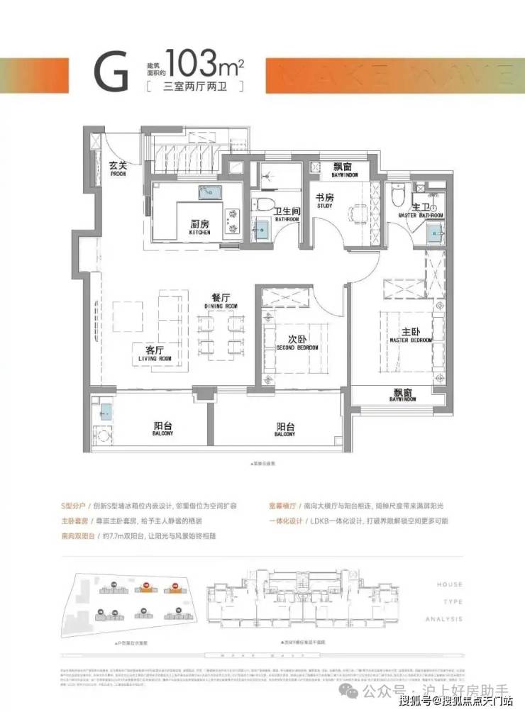 建面约127㎡三房两厅两卫,该户型最大的亮点是有着比肩豪宅的南北三阳台黄金布局,这是2025年之后,松江首个三阳台户型。