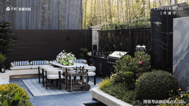 别墅生活,以花园为贵,纵观思南公馆、丁香花园、荣宅等传奇花园别墅,每一幢皆以阔绰花园尺度承载花园生活的极致。而保利·外滩序演绎花园别墅的当代奢侈,最大限度扩大花园面积。建筑面积约175-280㎡花园别墅,主力户型的花园附赠面积达到约61-108㎡,且南北双花园,是目前同面积段内花园面积最大的风貌别墅产品。开阔的空间,可随心布置上烧烤设备又或者放上一只长桌,在温暖的午后,和亲朋好友烧烤聚餐,又或者喝上几杯咖啡,欣赏门前的喷泉水景,体验生活的极致松弛感。